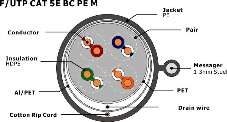 | कवच: | एफ़टीपी, परिरक्षित मुड़ जोड़ी | प्रोडक्ट का नाम: | मैसेंजर के साथ F/UTP CAT5E PE |